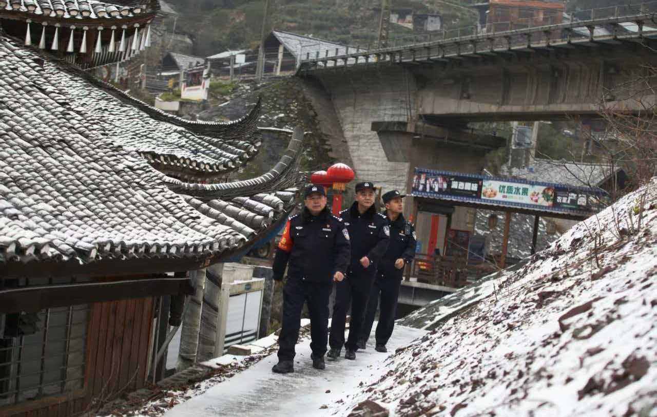 地处焦柳北线上的马颈坳、墨戎镇等铁路沿线是高寒地带,这里结冰积雪多。民警们冒着风雪对铁路防护栅栏等设施设备进行进行细致巡查,及时清理因冰雪压倒的树木等路障。