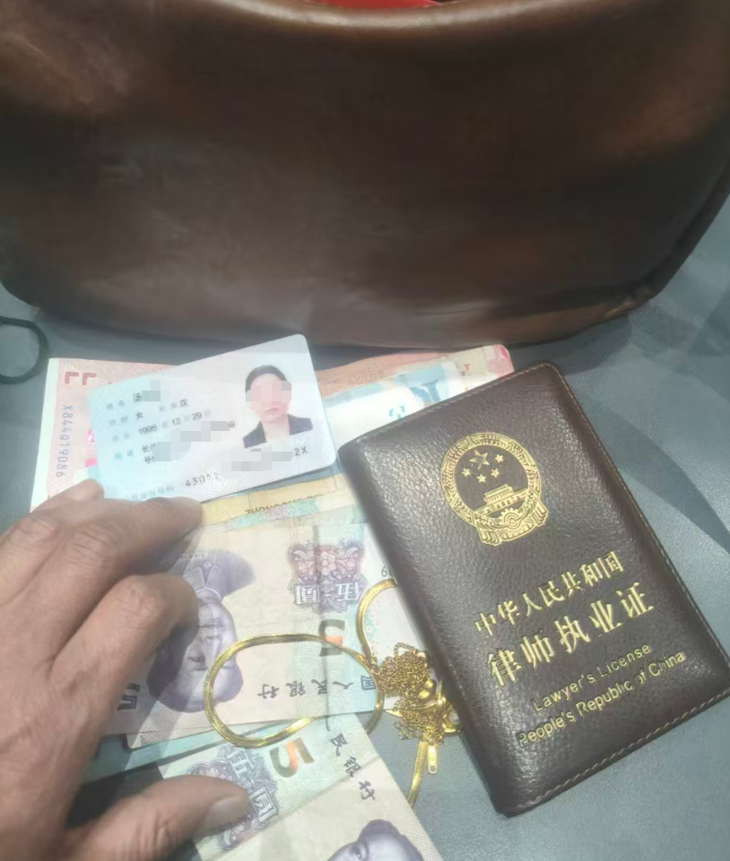 据悉,当日执勤民警在新化南站安检口执勤时,在安检机旁发现了一个无人认领的棕色女士挎包。寻找失主未果后,民警第一时间对包内物品开展清点。包内装有金项链1条、金手链1条,现金1205元,另有身份证、律师资格证等重要证件及个人物品。民警随即协调铁路工作人员,通过车站广播寻找失主,同时民警也在候车室,手持播音喇叭寻找失主。不久后,一名女士匆忙赶到服务台,称自己不慎遗失了挎包。经核实,该挎包确为汤女士所有。
