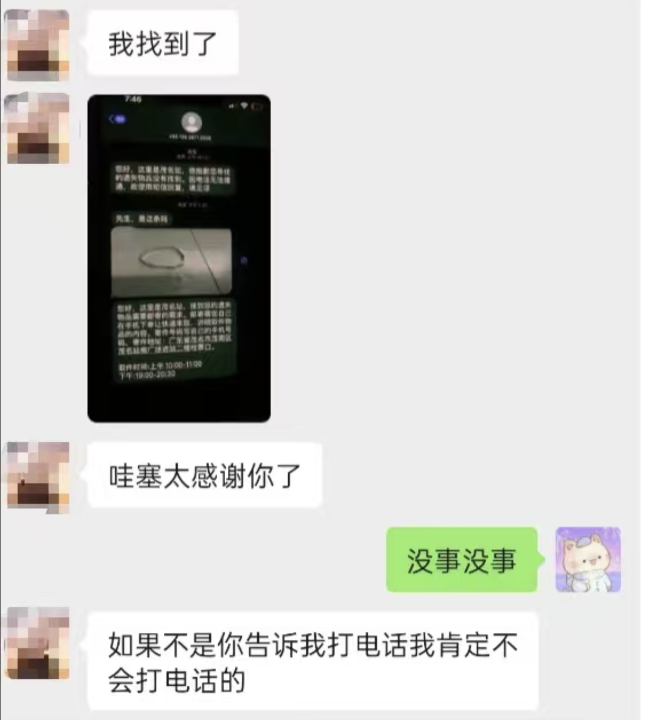 功夫不负有心人。次日下午,郑先生接到了茂名站工作人员的通知,被告知手链确实遗落在了车站,已被其他旅客捡拾上交。“真的非常感谢乘警!”郑先生激动地说道,“如果不是您及时提醒我联系车站,我根本没想到还能通过这种方式找回手链。”